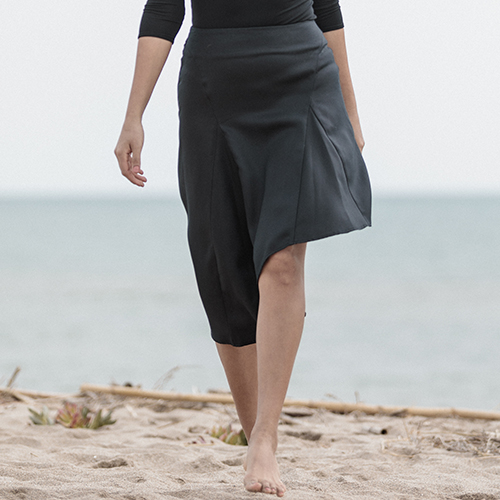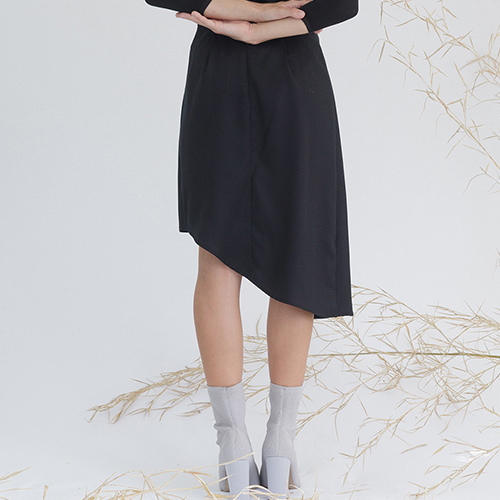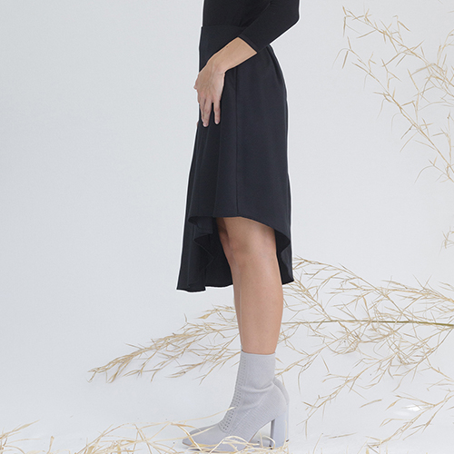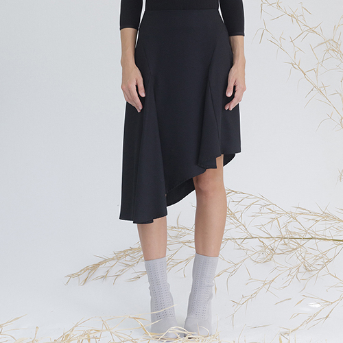 Refibra tencel skirt irregular lenght, black colour, with zipper.