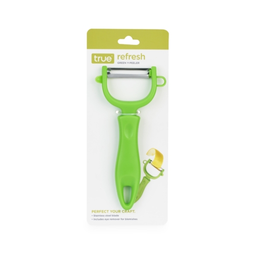 A garnish can make or break a drink. Keep things simple with this handy tool, that easily peels any citrus for the perfect finishing touch. Material: Stainless steel blade & Plastic handle Includes: eye remover for blemishes Care: Hand wash