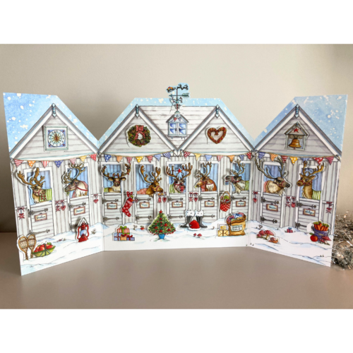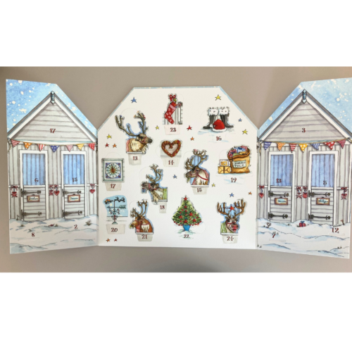 A beautiful free standing advent calendar printed in the UK on 350gsm board. 24 numbered push out characters that slot into corresponding place on the background to build a fun scene day by day.310x310mm (folded) 618x310mm (opened)