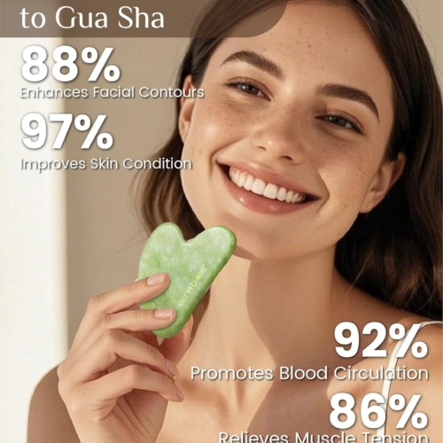 BENEFITS OF GUASHA: Experience the power of this traditional Chinese therapy—boosts blood circulation, reduces puffiness, sculpts your jawline, nourishes your skin, eases tension, and supports lymphatic drainage for a revitalized look