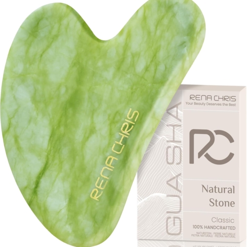NATURAL STONE: Rena Chris gua sha stone is handcrafted from 100% Xiuyan Jade from northeast of China. Xiuyan Jade symbolizes power and immorality in Chinese history
