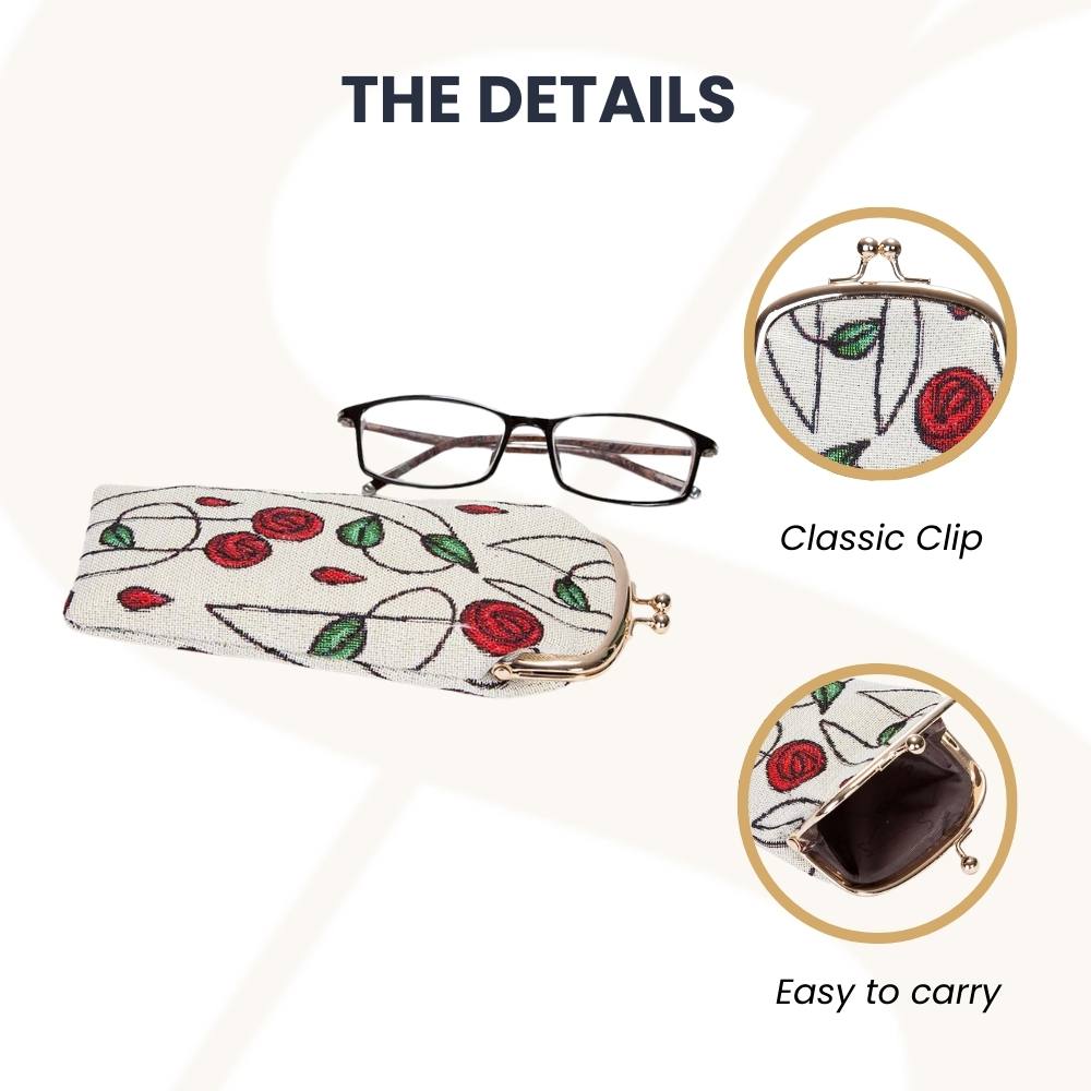 Contains a gold or silver frame (depending on design) with double clasp closure.