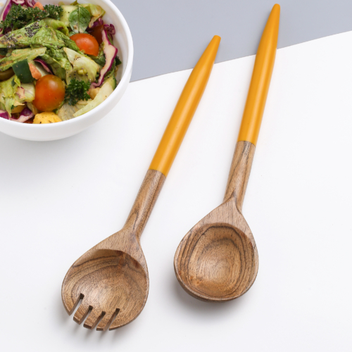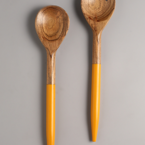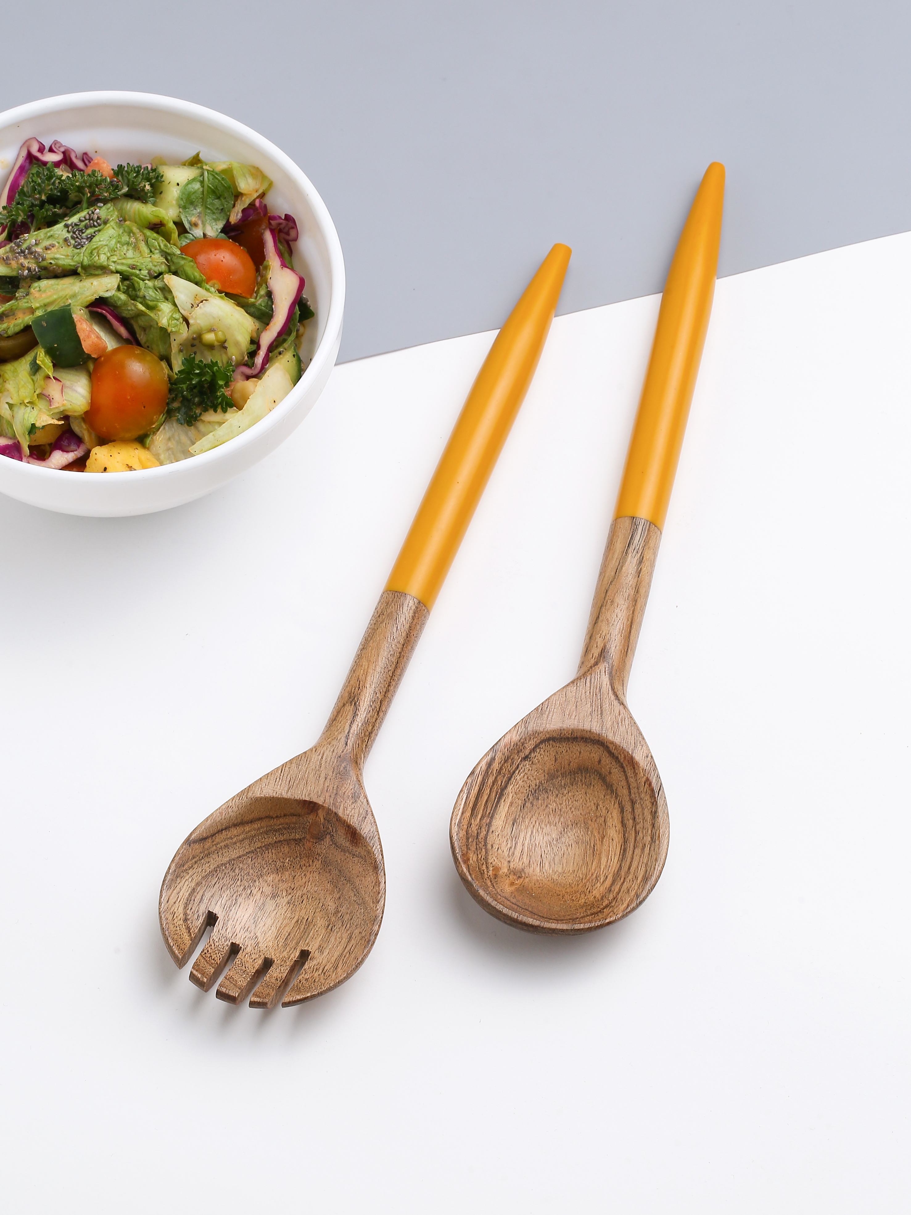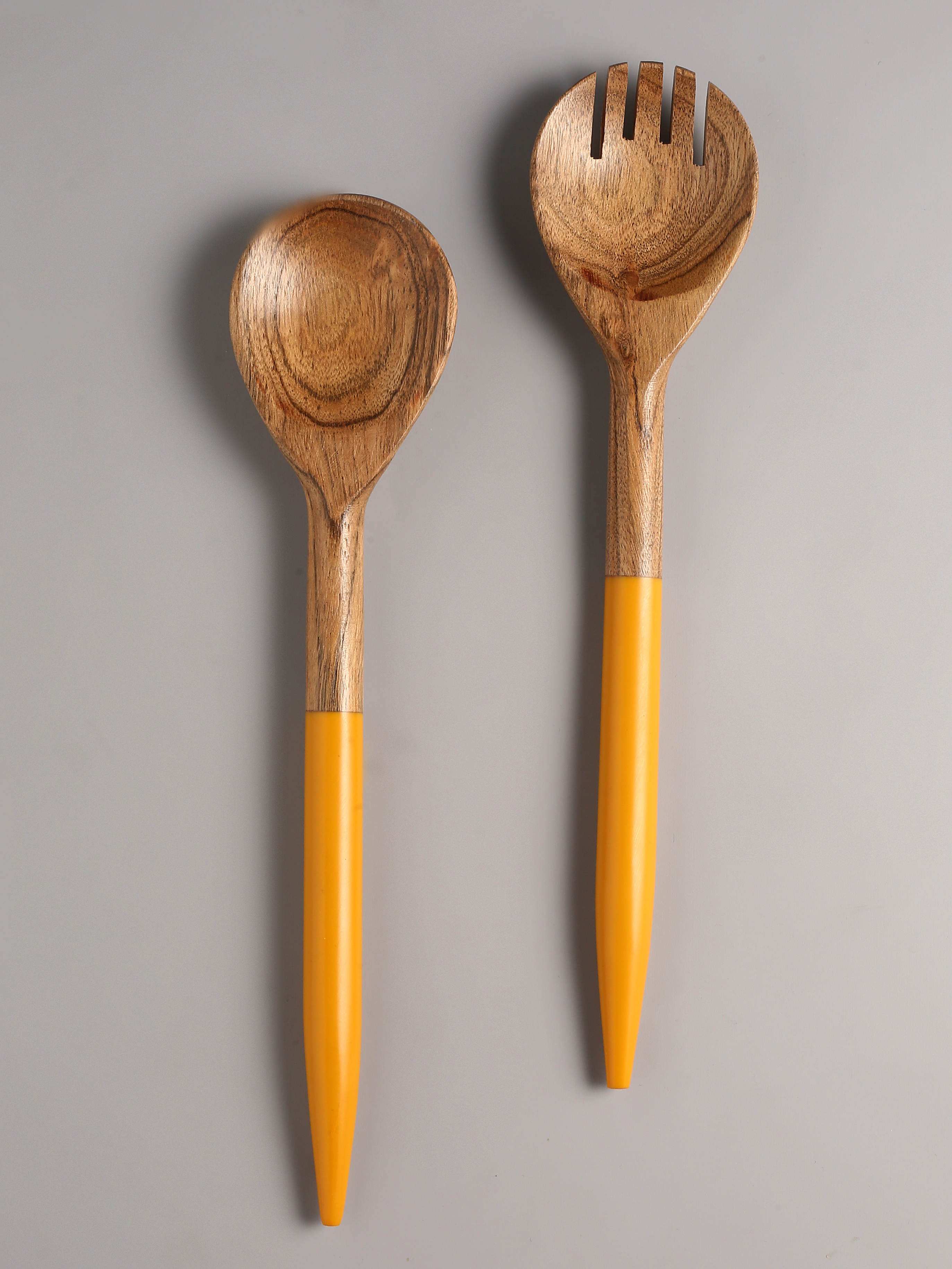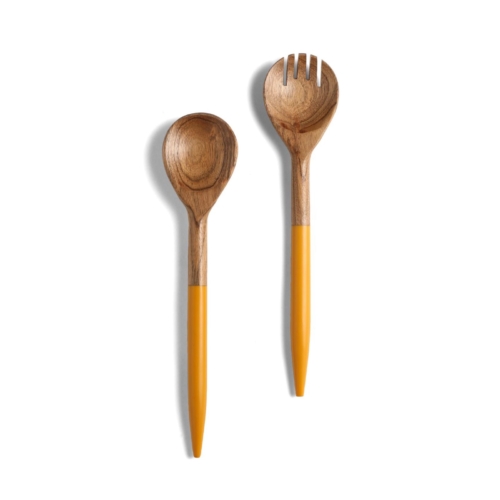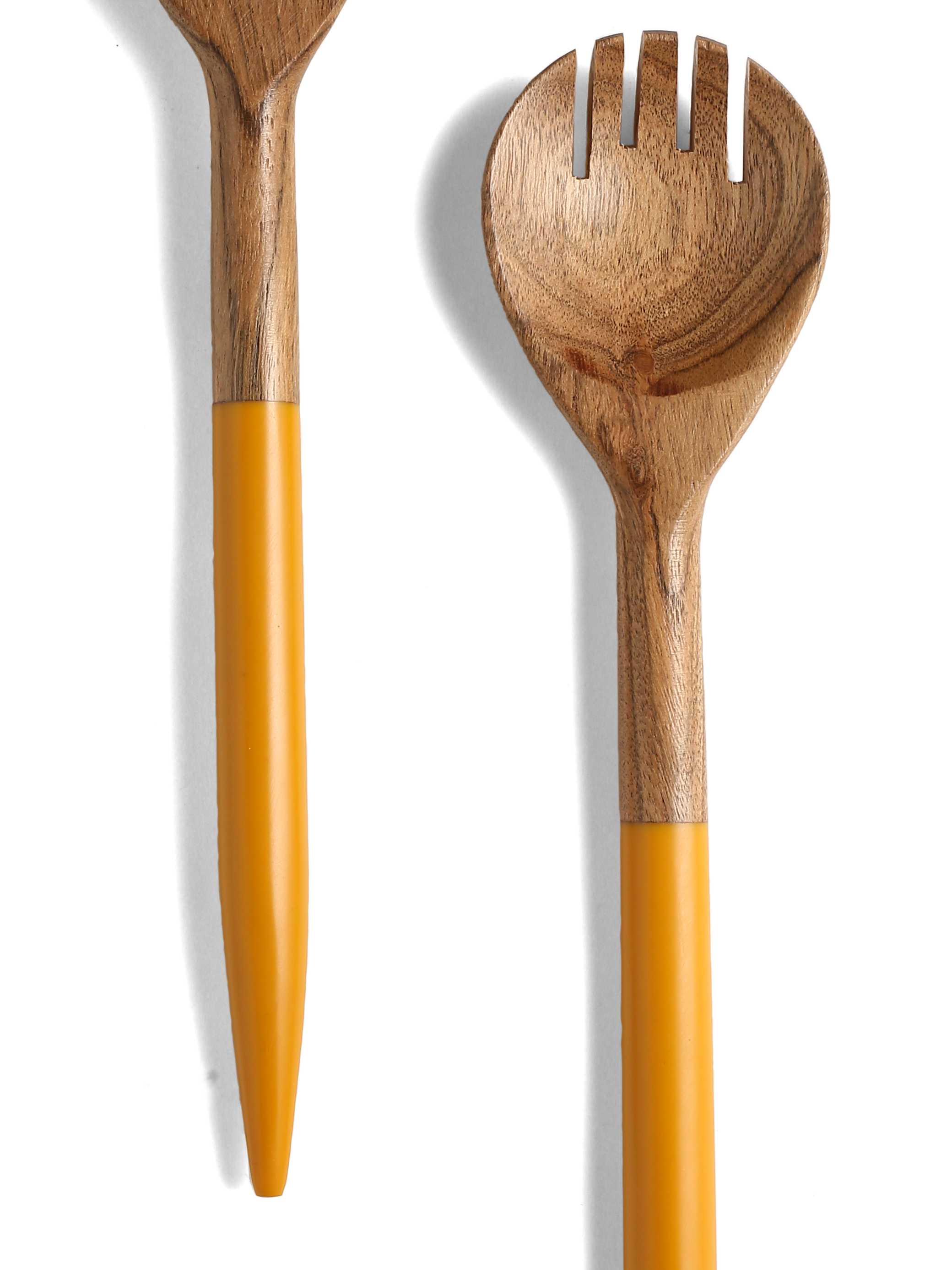 Orange-toned with ridged handles, this set of handcrafted salad servers is a stylish way to serve up leafy greens and pastas. Pair this set with a bottle of wine for a memorable hostess gift. Care Instructions- Hand wash only