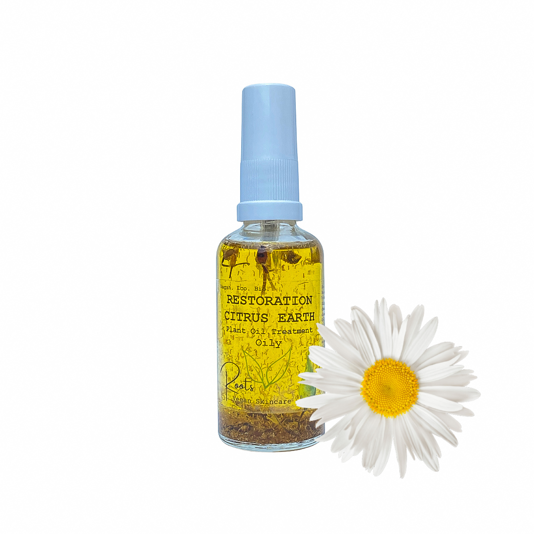 Restoration – Citrus Earth hair and skin treatment helps to nourish damaged skin, tressles and neglected scalps. Made with maximum amounts of vitamin E and Rosemary Co2 extracts for their antioxidant properties, plant silk from sugar beet to soften and improve feel, oat lipids to repair damaged skin, hair and scalp and anti-comedogenic oils of Egyptian Jojoba & Austrian Thistle as well as Indonesian Patchouli, Egyptian Petitgrain & Roman chamomile essential oils and chamomile flowers for their sebum balancing properties.