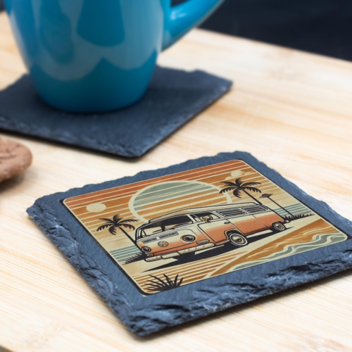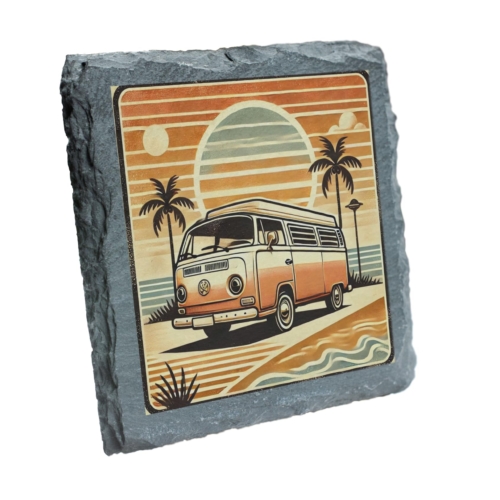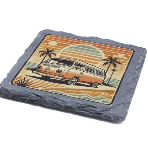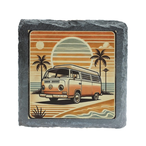 Bring the laid-back charm of the coast into your home with the Retro Beach Van Slate Coaster. Featuring a beautifully illustrated vintage camper van set against a stunning beach sunset, this coaster captures the essence of coastal adventures and nostalgic road trips. Crafted from premium natural slate, it offers a stylish yet durable solution to protect your furniture. Whether you?re hosting friends or sipping your favorite drink, this coaster ensures your surfaces stay spotless while adding a touch of retro beach flair. Perfect as a gift for adventurers, surf lovers, or anyone who appreciates a classic camper van, this coaster is a delightful addition to any collection. Nostalgic Retro Design: Showcases a classic camper van with a vibrant beach sunset background, perfect for travel enthusiasts and retro lovers. High-Quality Slate Material: Handcrafted natural slate, ensuring durability and resistance to heat while protecting surfaces. Ideal for Beach-Inspired Decor: Adds a vintage, coastal vibe to any home, bar, or patio. Functional and Stylish: Practical coaster that enhances table aesthetics while keeping surfaces safe from spills and stains. Unique Gift Choice: An excellent gift for camper van fans, surfers, or anyone dreaming of road trips and sunny beaches.