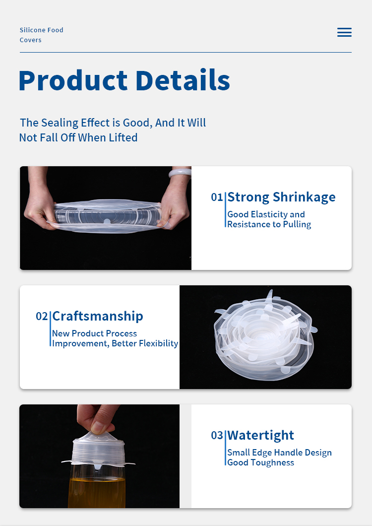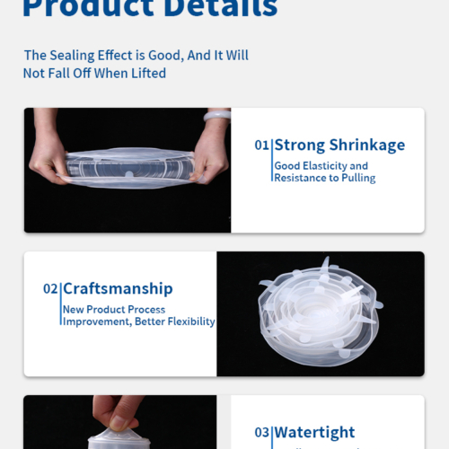 Silicone stretch lids are made of high-level grade silicone, soft texture, durable, non-toxic which is 100% Phthalate, Lead, Plastic and BPA free. You can use the stretch lids all time without worrying your family health.Stretchy food lids help you keep the fruits, vegetables, drinks and other foods fresh, Keep spill and oder free, and also avoid food spills in microwave oven. ②Silicone lids food covers are better than plastic wrap or silver foils.Making it stackable and space efficiency in the refrigerator. Note: Don’t seal the container when heated in the microwave.These silicone food cover are stretchable and durable,Can be stratchde doubled size as originally and can match mulitiful container without deformation. ②Silicone Food Covers come in 6 sizes (2.5, 3.5, 4.4, 5.3, 6.3, 7.8inch), easy to fit snugly over odd-shaped mugs, pots, cups, bowls & fruits.Our food covers’ temperature range are -40 ℃ ~ +230 ℃, suitable for refrigerator, dishwasher and microwave oven. ②Silicone Lids Food Covers are easy to clean up nicely, soft texture, reusable wrap,tear resistance etc. Easy to slip on, and you don’t have to change containers to put a lid on something. Feel free to wash it by hand or dishwasher.Eco lids are reusable and durable silicone material, reducer your plastic waste and help you save money. We are committed to providing you with 100% satisfaction service, Pls contact us if having any problem