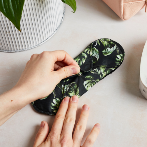 A handmade, reusable menstrual pad to use as an alternative to single use, plastic sanitary pads.