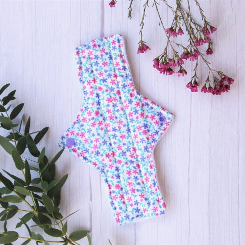 This listing is for single reusable menstrual pads with a minimum order quantity of 5 in size medium – 9″