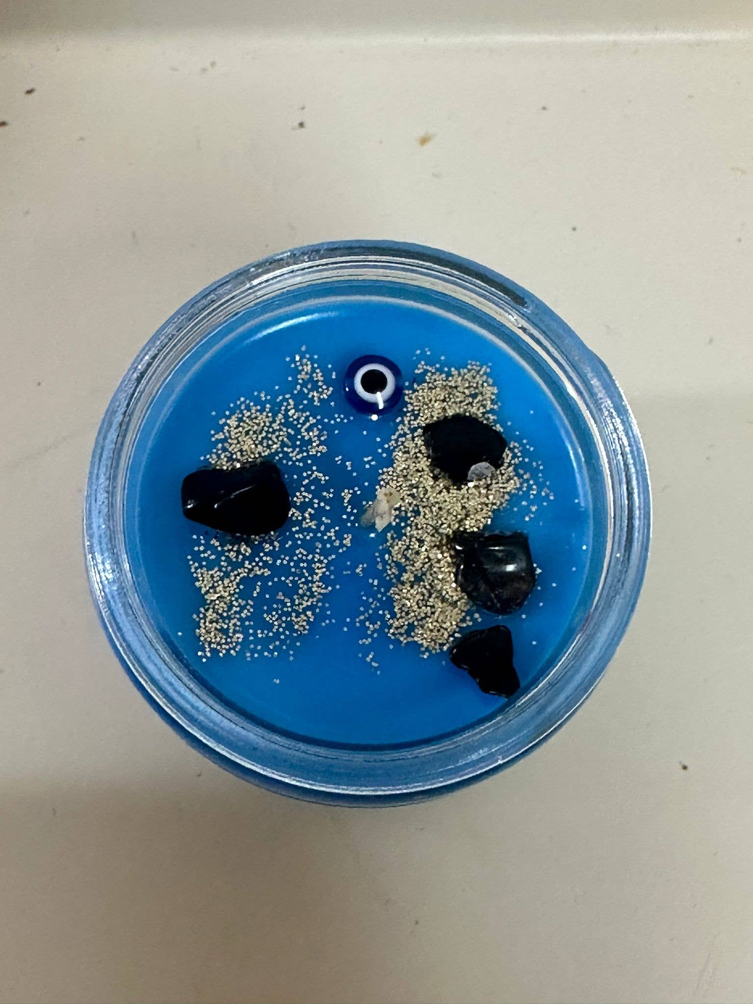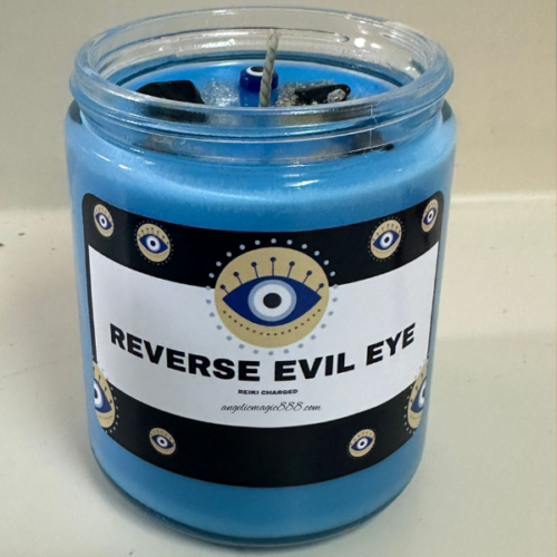 🕯️ Reverse Evil Eye Candle: Banish Negativity with Amber Noir 🕯️Introducing our Reverse Evil Eye Candle, a potent blend of mystical energy and aromatic allure, designed to ward off negativity and usher in a realm of positivity and protection. Crafted with the finest ingredients and infused with the captivating essence of Amber Noir, this candle is your ultimate guardian against malevolent forces.Key Features:🔥 Amber Noir Essence: Immerse yourself in the rich, alluring fragrance of Amber Noir, a complex blend of amber, sandalwood, and musk. As the candle burns, feel the comforting warmth of amber enveloping your space, creating a sanctuary of tranquility and strength.👁️ Reverse Evil Eye Protection: Harness the ancient power of the Evil Eye symbol, revered for its ability to deflect negative energies and shield against harm. Our candle acts as a beacon of protection, creating a barrier of positivity and repelling any malevolent intentions directed your way.