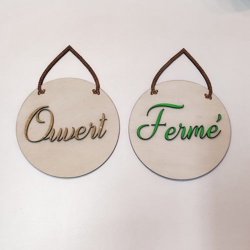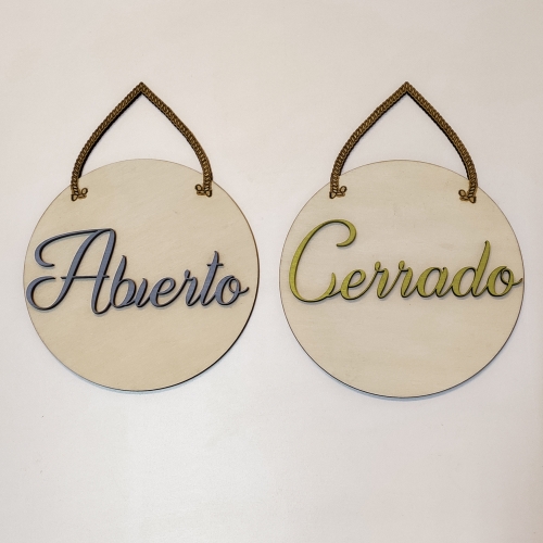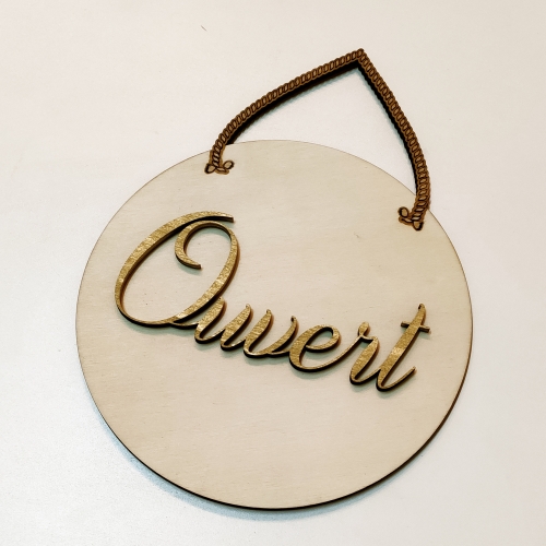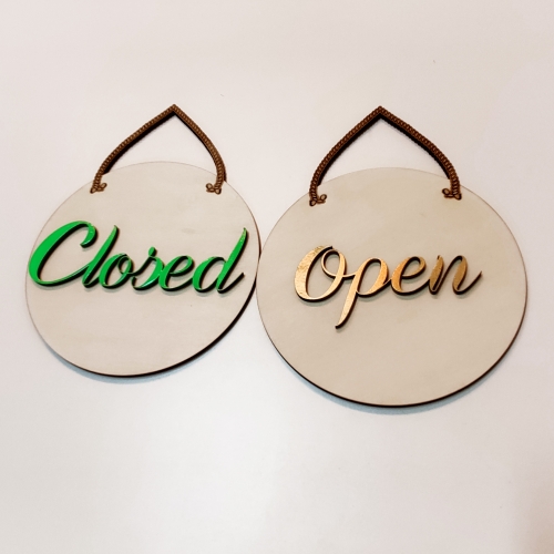 Adorable Reversible Open/Closed Door Sign with wooden handle! This beautiful all natural wood Open/Closed Door Sign is made to order using a state of the art laser cutter, so you can be sure that the design will be exactly as shown. We can make in other languages, colors and styles, leaving your space with a unique and personalized touch.