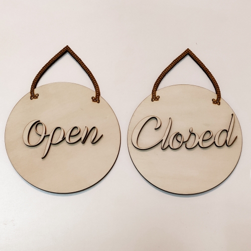 Adorable Reversible Open/Closed Door Sign with wooden handle! This beautiful all natural wood Open/Closed Door Sign is made to order using a state of the art laser cutter, so you can be sure that the design will be exactly as shown. We can make in other languages, colors and styles, leaving your space with a unique and personalized touch.