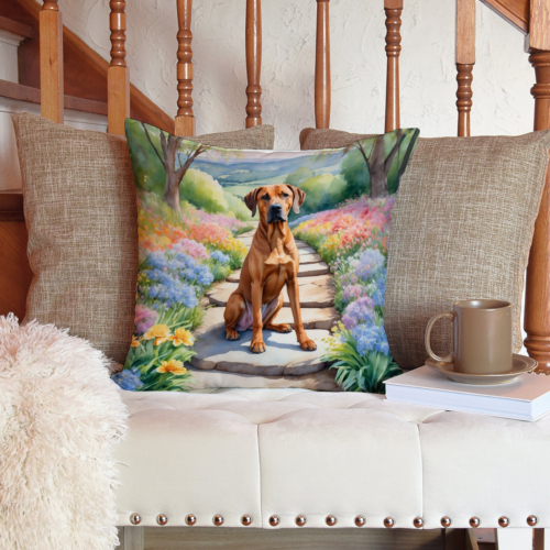 Throw Pillow featuring breed specific Rhodesian Ridgeback artwork. Add a touch of vibrancy and comfort to your outdoor seating with Caroline’s Treasures Fabric Decorative Pillow. Measuring approximately 14 inches by 14 inches, this outdoor pillow is crafted to elevate the appeal of your patio furniture, infusing it with vivid color and artistic flair. The pillow includes a 100% Polyester Fabric sham filled with a quality pillow form to provide superior comfort. Innovatively made from our brand new material, specifically woven for its water resistance, this pillow is designed for durability. The soft canvas fabric offers versatility in use, fit for your indoor couch or your outdoor patio, porch, or veranda. The fabric is dyed with colorfast dyes built for resilience against weather conditions, ensuring the pillow retains its beauty over time. Constructed by sewing three fabric pieces to create a sham, the polyester insert is then nestled inside to form the pillow, resulting in an overstuffed pillow that maintains its shape. Both the sham and the pillow insert are proudly made in the United States. As the pillows are handcrafted, there may be minor variations in size, further enhancing their unique charm. Experience comfort in style with Caroline’s Treasures Fabric Decorative Pillow.