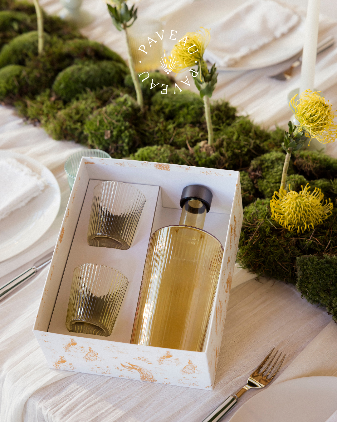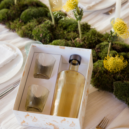 Introducing our elegant Paveau Gift Set: one refined bottle and two chic glasses, beautifully packaged in an elegant gift box.
