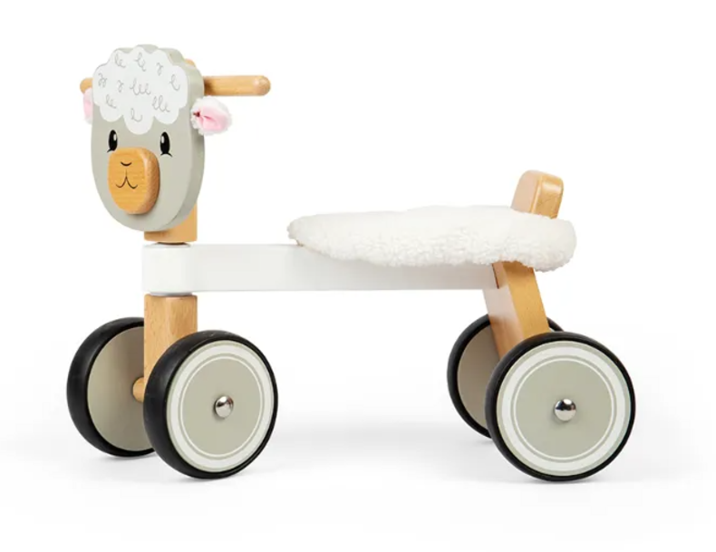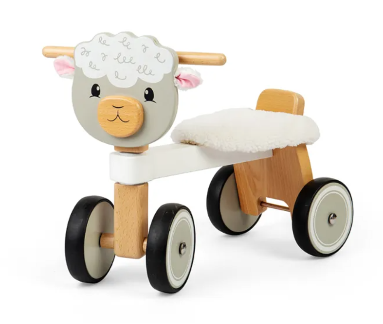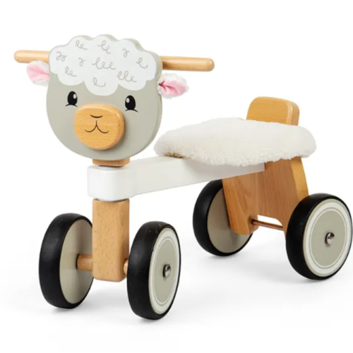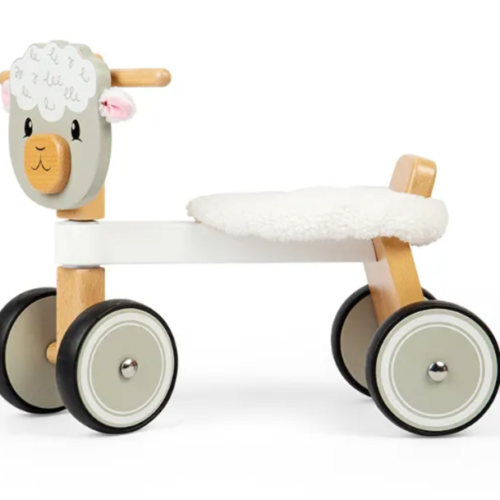 Ewe will love this fa-baa-lous ride on toy! Toddlers can jump on their four-wheeled Ride On Sheep, push their little feet along the floor to speed off, and steer the wooden handlebars to zoom around corners. This animal ride on comes with a soft fluffy seat to make the ride super comfy. Ride on toys have tons of benefits when it comes to early childhood development. As well as boosting kids’ confidence and independence, they also help to improve their balance, coordination and gross motor skills. Not to mention the fun factor! Made from ethically sourced FSC® Certified wood and coloured with non-toxic paints and lacquers. Conforms to current European safety standards. Suitable for 18+ months. Ride On Sheep – product features: Wooden sheep ride on toy 4 wheels Wooden handlebars Fluffy seat accessory Made from FSC® Certified wood For 18+ months