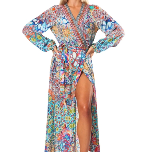 Women’s Maxi Wrap Dresses by La Moda Sea Escape Women’s Maxi Wrap Dresses by La Moda. A plunging V neckline takes this design from sweet to sultry, Fitting for brunch at a luxurious beach front resort, this stunning wrap dress is so easy to wear and be comfy yet look elegant. This flowy look is easy to pair with a staple sandal in the warmer months or a bold boot in the colder, this cool and classic dress is sure to be your go-to from season to season. 100% Viscose Silk Pack of 4 Pcs This is a unique garment. The imperfections in these fabrics are not considered defects, but characteristics that make them authentic.