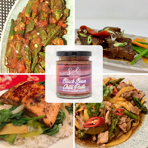 Red Chilli (32%). Rapeseed Oil, Salted Black Beans (12%), Rice Wine, Chilli Flakes (5%), Demerara Sugar, Soy Sauce (Water, Soybeans, Wheat, Salt, Alcohol), Sesame Oil, Citric Acid, Salt.