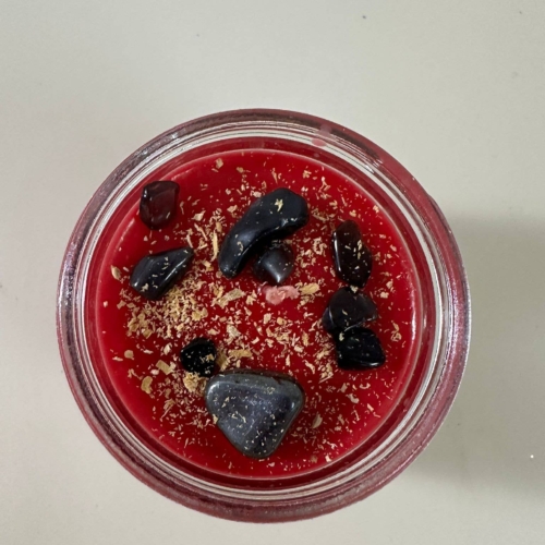 Located at the base of the spine, the Root Chakra governs feelings of safety, security, and stability. When balanced, it fosters a sense of grounding, inner strength, and resilience, allowing you to navigate life’s challenges with confidence and grace.Immerse yourself in the comforting aroma of cinnamon, known for its grounding and comforting properties. The rich, spicy fragrance envelops your senses, instilling a sense of warmth, security, and stability, akin to a cozy embrace from the earth itself.Enhanced with the protective energies of Onyx and Hematite crystals, our candle fortifies the Root Chakra, shielding you from negative influences and anchoring you to the present moment. Onyx provides a strong foundation for inner growth and stability, while Hematite grounds and stabilizes your energy, fostering a deep sense of security and empowerment.