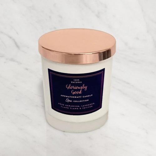 Indulge your senses with this Rose Geranium, Lavender, Ylang Ylang & Vetiver aromatherapy candle from our Spa collection.