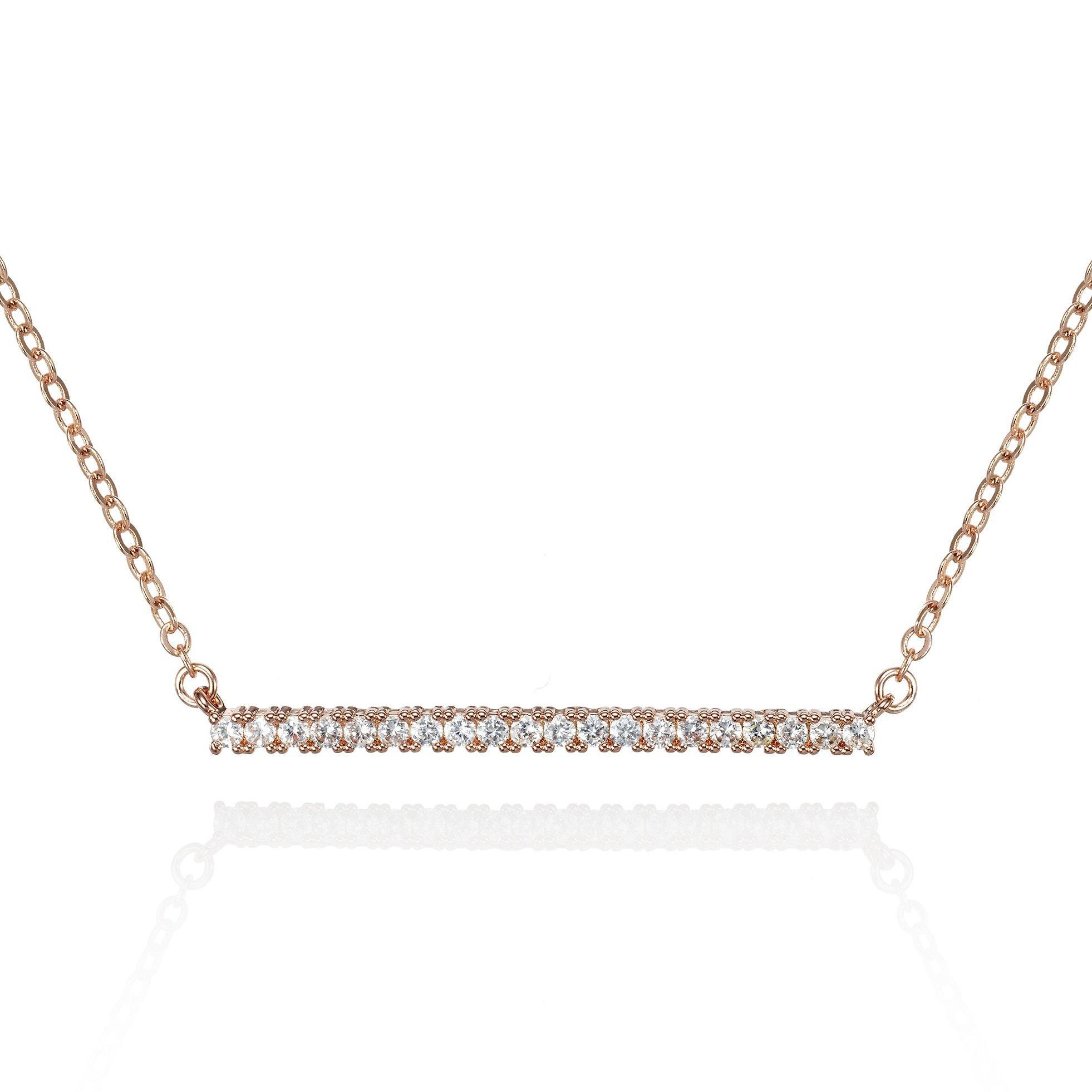 Features Elegant Bar necklace with an adjustable 18″ chain, with 2″ extension links 40mm x 2.5mm bar set with AAA Cubic Zirconia, on a diamond cut chain studded with 4mm round CZ Nickel-free and lead-free high quality fashion jewellery by NAMANA made from 18ct rose gold-plated brass Features NAMANA logo on the clasp Presented in a specially designed jewellery box, creating a beautiful gift or keepsake Description Sparkling Cubic Zirconia delicately set in a stylish bar design draw the eye to this elegant necklace. The shimmering stone studded chain adds to the overall allure of this necklace Choose from sophisticated silver or warm rose gold and play with your look by layering with other NAMANA necklace. This feminine style is a firm favourite with the fashion crowd. NAMANA jewellery is presented in a stylish gift box, creating a beautiful present or keepsake – or a well-deserved treat for you!