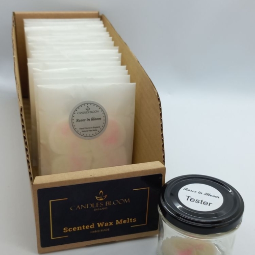A free wax melt sample as a tester will be provided in a glass jar on the first order. All repeat orders will contain a wax melt sample but not glass jar and only be available on request.