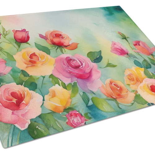 Glass Cutting Board featuring breed specific Roses artwork. Introduce your kitchen to the vibrant, large Decorative Glass Cutting Board from Caroline’s Treasures. Crafted from resilient tempered glass, this board is not only a utilitarian necessity but also a colorful art piece. With its generous dimensions of 15 inches in height and 12 inches in length, it offers ample space for all your cutting needs. Every piece showcases captivating artwork from distinguished artists, bringing an aesthetic edge to your kitchen. Beyond its attractive design, this cutting board ensures your countertop stays pristine and unscathed, owing to its heat-resistant properties. Engineered with user convenience in mind, it features non-skid feet for stability, and rounded corners for additional safety. Its robust construction renders it virtually unbreakable, guaranteeing longevity. The board comes with protective feet bumpers, maintaining its position during use. This product is recommended to be hand washed only. Proudly printed and assembled in the United States, this cutting board exemplifies superior craftsmanship. With Caroline’s Treasures’ Decorative Glass Cutting Board, you’re investing in a blend of functionality and artistic flair.