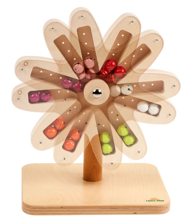 Bell Flower Beautifully designed wooden rotating spirals, ideal for engagement and curiosity. As the child spins the wooden top, they can watch the contents rotate and hear the bells and sounds chime as they move around the wooden casing. Each spiral has a different effect that is equally engaging. Enjoyable play-based learning, great for helping young children’s developing coordination. These brightly coloured resources have an engaging appearance that will pique children’s interests and encourage them to explore. Features Material:Wood Height:30 cm Brand:Eduplay Age Range:Suitable from birth to 36 months