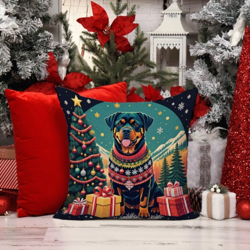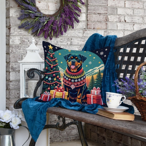 Throw Pillow featuring breed specific Rottweiler artwork. Celebrate Christmas with this Christmas Pillow. Revitalize your outdoor or indoor living space with Caroline’s Treasures 18×18 Fabric Decorative Pillow. With a generously sized dimension of approximately 18 inches by 18 inches, this pillow makes a comfortable and aesthetic addition to any seating area. Made from a unique, water-resistant material developed by Caroline’s Treasures, the pillow sham is 100% polyester fabric that’s durable and ready to weather any condition. Its vibrant, full-color artwork will not fade over time as it is dyed with color-fast dyes. Whether you place it on your patio furniture, porch, veranda, or indoor couch, its soft canvas fabric ensures a cozy experience. The pillow is handcrafted in the United States, featuring a sham created from three pieces of fabric and a polyester insert for enduring shape and overstuffed comfort. Despite being robustly built to endure the outdoors, it is as soft and snug as your favorite indoor cushions. Please note, as all our pillows are handmade, sizes may vary slightly, adding to the charm of this unique decorative item.