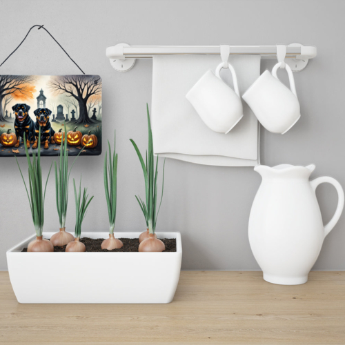 Wall or Door Hanging Prints featuring breed specific Rottweiler artwork. Celebrate Halloween with this Halloween Metal Print. Add a splash of color and artistic flair to any indoor or outdoor space with our Aluminum Artwork Prints. These unique prints, featuring full-color, multicolor designs, provide a versatile decorative touch that can enhance a kitchen, bathroom, office, outdoor patio, or even the front door area. Each print measures 8 inches by 12 inches, making it the perfect size to catch the eye without overwhelming your space. Constructed with durability in mind, these prints can be placed outdoors and withstand direct sunlight for a significant amount of time before any fading begins. Designed for easy installation, each print features a black hanging rope and has a lightweight profile. This allows for quick hanging with just about any nail or screw. For safety and aesthetic appeal, the print’s corners are gently rounded. The back of the print showcases a brushed silver color for an added touch of elegance. Rust and fade-resistant, these Aluminum Artwork Prints are not only beautiful but are also built to last. Elevate your space with these stunning prints, crafted with care and artistic passion.
