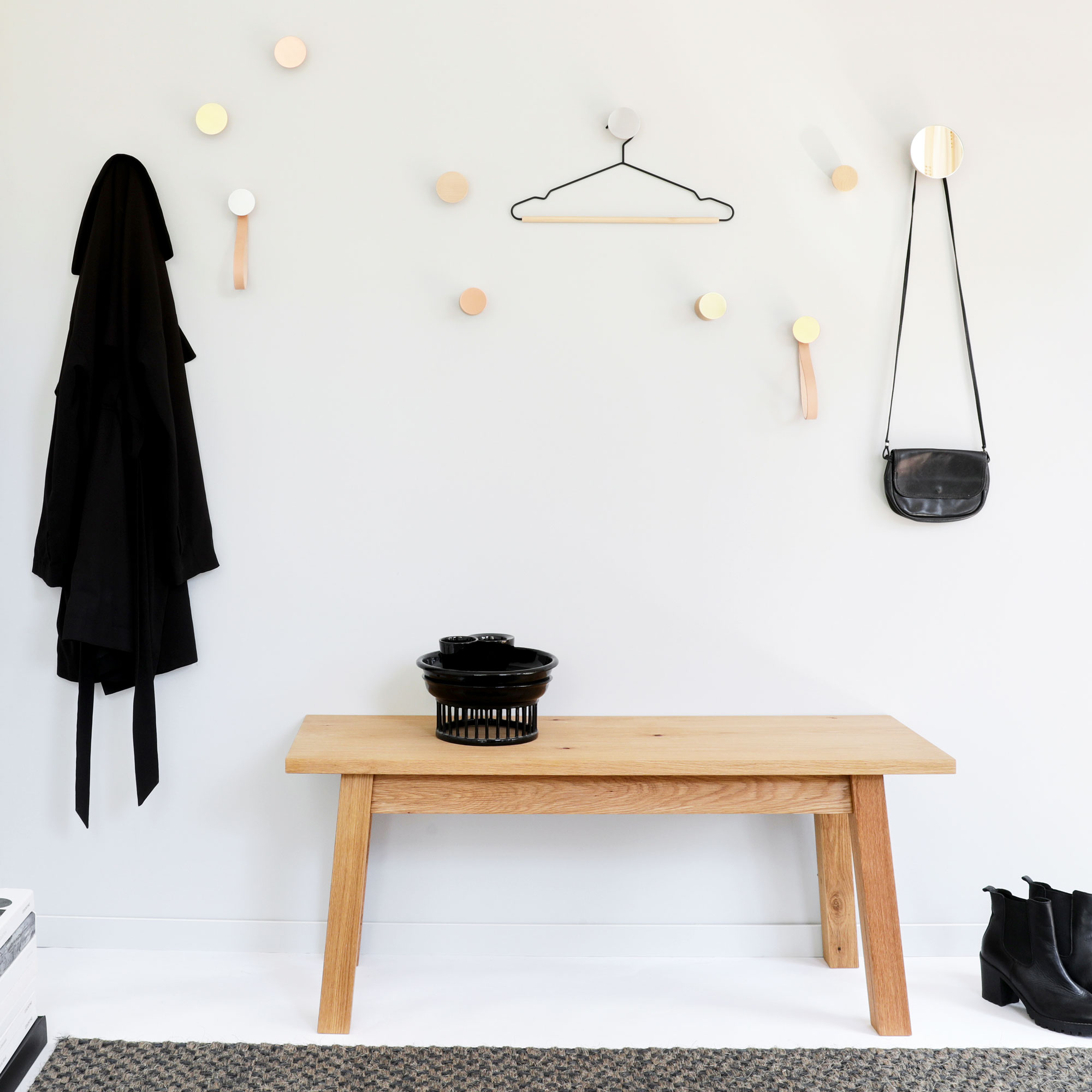 Size options – The light beech wood hook with brass front finish is available in 5cm or 6cm diameter. Combine both diameters to create a playful style.