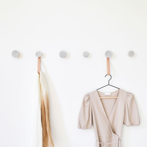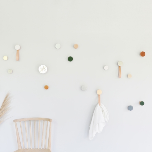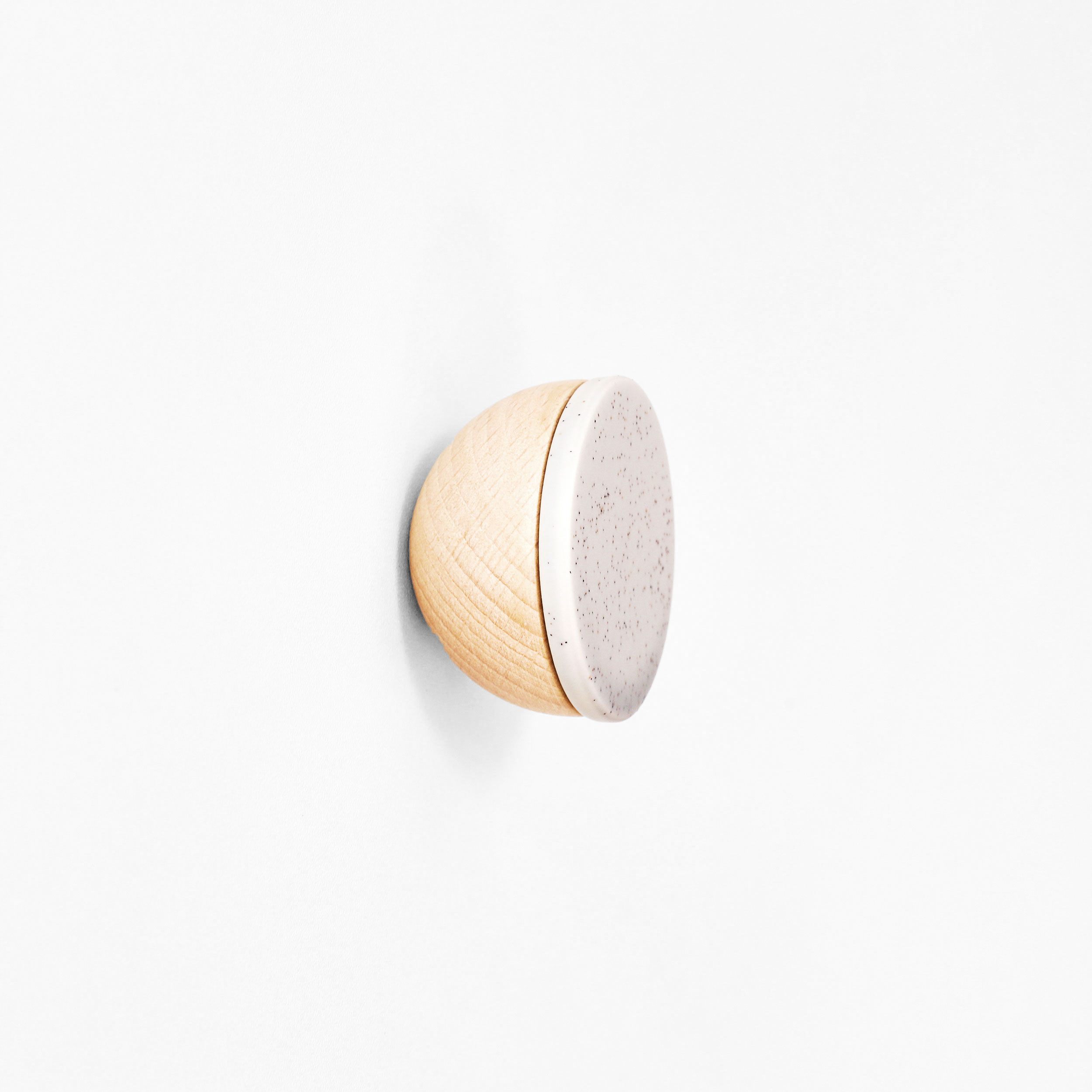Round Beech Wood & Ceramic Wall Mounted Coat Hook / Knob – Grey Sand