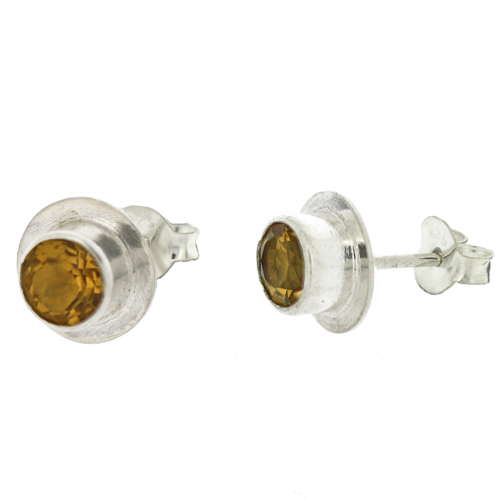 Round Double Set stud earrings, set with Citrine faceted. Complete with a post and butterfly back.