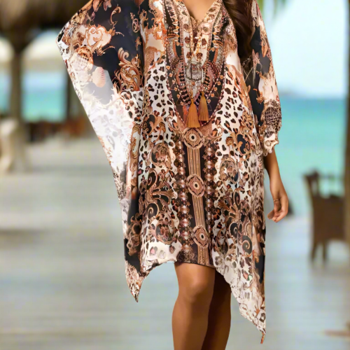 Explore Our Royal Jungle Designer Kaftan Wholesale Vibrant Styles for Every Occasion Our Designer Kaftan Wholesale collection features vibrant designs that capture the essence of fun and elegance. You can effortlessly dress up for a casual outing or a formal gathering. Our Kaftans are not only beautiful, but they are also comfortable because they are made from quality fabrics that flow with your movements. So, whether you’re lounging at the beach or attending an event, you’ll always look chic! Versatility at Its Best One of the best things about our Designer Kaftans Wholesale is their versatility. They come in various prints and colors, meaning you can mix and match them with almost any accessory. This flexibility allows you to express your unique style, ensuring that your outfit reflects who you are! After all, fashion should be fun and expressive, and our Kaftans make that easy. Quality You Can Trust When you shop with us, quality is a guarantee! Our Designer Kaftans Wholesale are crafted with care, using top-notch materials that ensure longevity. Therefore, you won’t need to worry about wear and tear after a few washes. Instead, you can focus on enjoying your stylish new outfits because they are durable and elegant—truly a win-win! Royal Jungle Designer Kaftan Wholesale in Viscose Silk – Kaftan Suppliers & Manufacturers of Bulk Ladies Caftans. Cotton, Georgette, Silk, Printed, Arabic Designer Dresses & Beachwear. Pack of 4 Pcs One Size