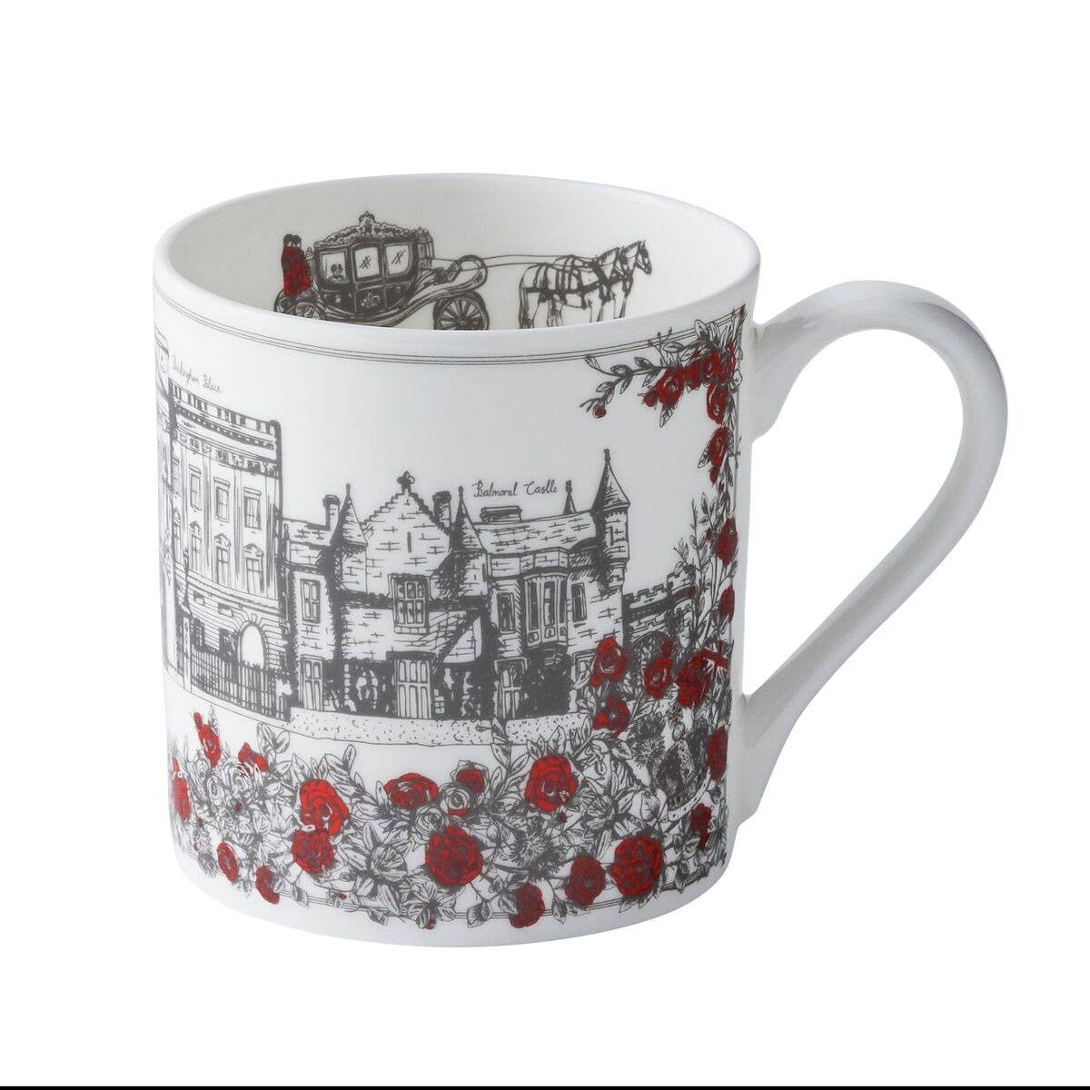 Who wants a cuppa? This intricately hand illustrated Royally British Mug features a truly British design highlighting everything you love about the Royal British Family.- Hand-crafted using Cornish Clay in Stoke-on-Trent, Staffordshire, UK, the heart of the ‘Potteries’.- Dimensions: 89 (h) mm x 85 (diameter) mm, Capacity 380 ml-Capacity: 380 ml- Weight : approx 250 grams.- Made exclusively for Victoria Eggs by Duchess China 1888.Dimensions: 8.5(d) x 9(h)cm.Washing: Dishwasher and Microwave safe.This item comes bulk packed in a protective cardboard carton. Not individually boxed. Presentation boxes for mugs are available separately. Keywords: Queen, Queen Elizabeth, Queen Elizabeth the 2nd, London, England, Royal, Buckingham Palace, U.K, gift, cup, mug, tea, coffee, drink, hot drink, kitchen, breakfast, Britain, British, Capital, U.K