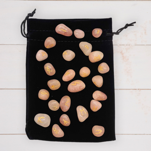 Rune Set with Pouch, 1-2cm, Rose Quartz
