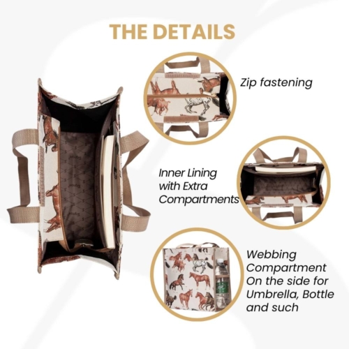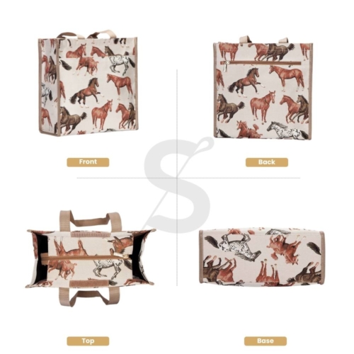 FABRIC COMPOSITION: 100% Polyester.EASY CARE: Clean it with a damp cloth. Do not soak in water.[custom_html] PRODUCT DESCRIPTION: Ladies’ large tote bag definitively designed for an avid shopper. This shopping bag is sturdily made for a busy day at the shops; with ample room provided for your goods Pair of full width pockets located on both sides of the shopper; one is fastened with a zip and the other with velcro for a stylish variation and easy access Lined with a synthetic material on the inside and a zip pocket for belongings Top of the bag is gusseted with the tapestry material and has zip fastening across the full width Two grab handles for carriage Reinforced base for extra support Mesh pocket at one end of the bag, ideal storage for a water bottle or umbrella Size: 12.2 x 11.8 x 5.3 inches – Weight: 1 lb [/custom_html]