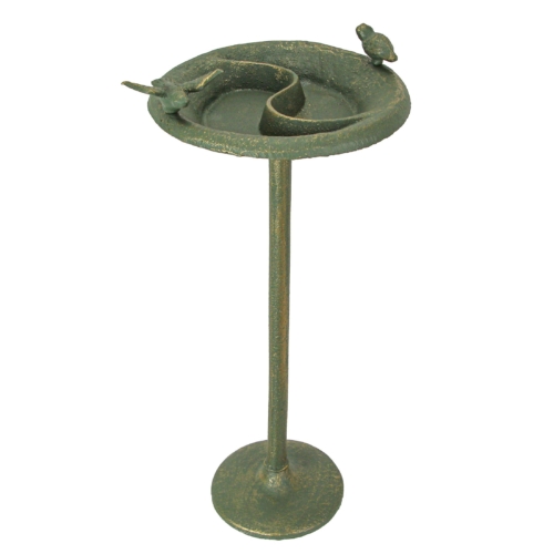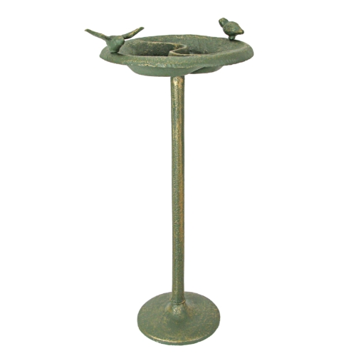 OVERALL SIZE – 9.5 Inch Long, 9 Inch Wide, 20 Inch High EASY ASSEMBLY – Quick And Simple To Assemble With Included Hardware And Instructions RUSTIC FINISH – Rustic Aged Verdigris Painted Finish For a Timeless Weathered Look VERSATILE STYLE – Can Be Used As A Decorative Bird Bath Or Feeder Stand