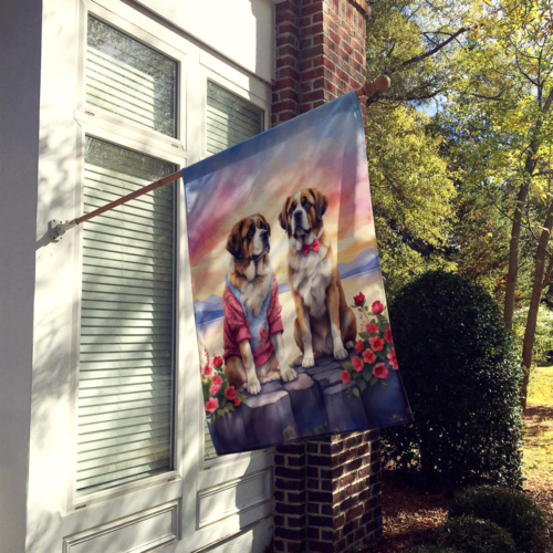 House Flag featuring breed specific Saint Bernard artwork. Celebrate Valentine’s Day with this Valentine’s Day Large Flag. Presenting our Heavy Duty Polyester House Size Decorative Sleeve Pole Flag, a vibrant addition to enhance the aesthetic appeal of your home. This large decorative flag, measuring approximately 28 x 40 inches, offers ample coverage and visibility. Each flag is meticulously sewn and made individually, ensuring a unique piece that may slightly vary in size. It’s a sleeve pole flag, designed to fit a standard decorative flag pole effortlessly. Please note that the flag pole and bracket are not included and should be purchased separately. What sets our flag apart is its dual-sided print. The design is mirrored on both sides of the fabric, allowing for uniform visibility regardless of the angle. Printed in full color, our flag showcases vibrant hues that truly stand out. To ensure lasting vibrancy and durability, the dyes are heat-set into the fabric. This ensures your flag remains bright and captivating through various weather conditions. Elevate the look of your home with our Heavy Duty Polyester House Size Decorative Sleeve Pole Flag!