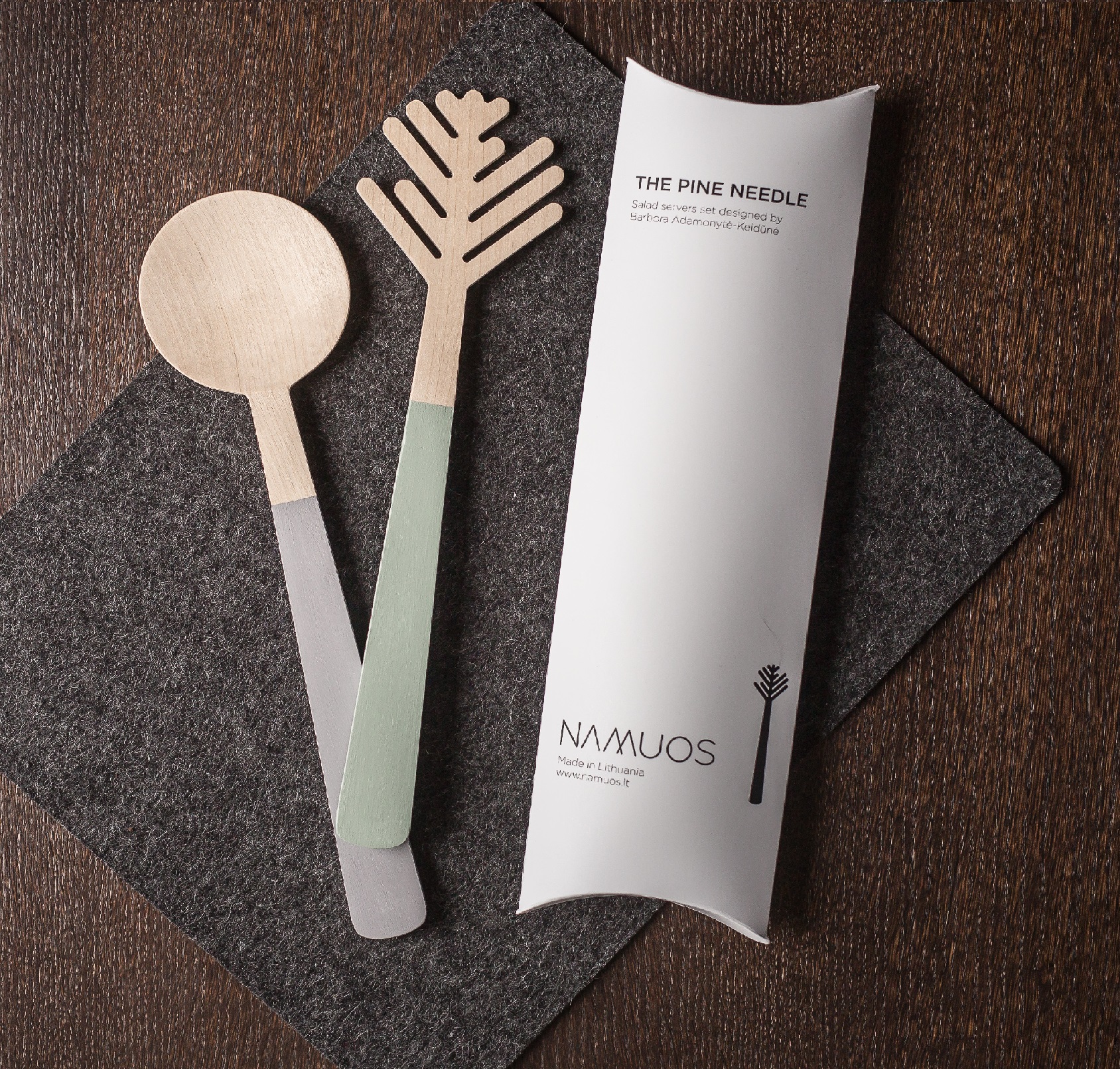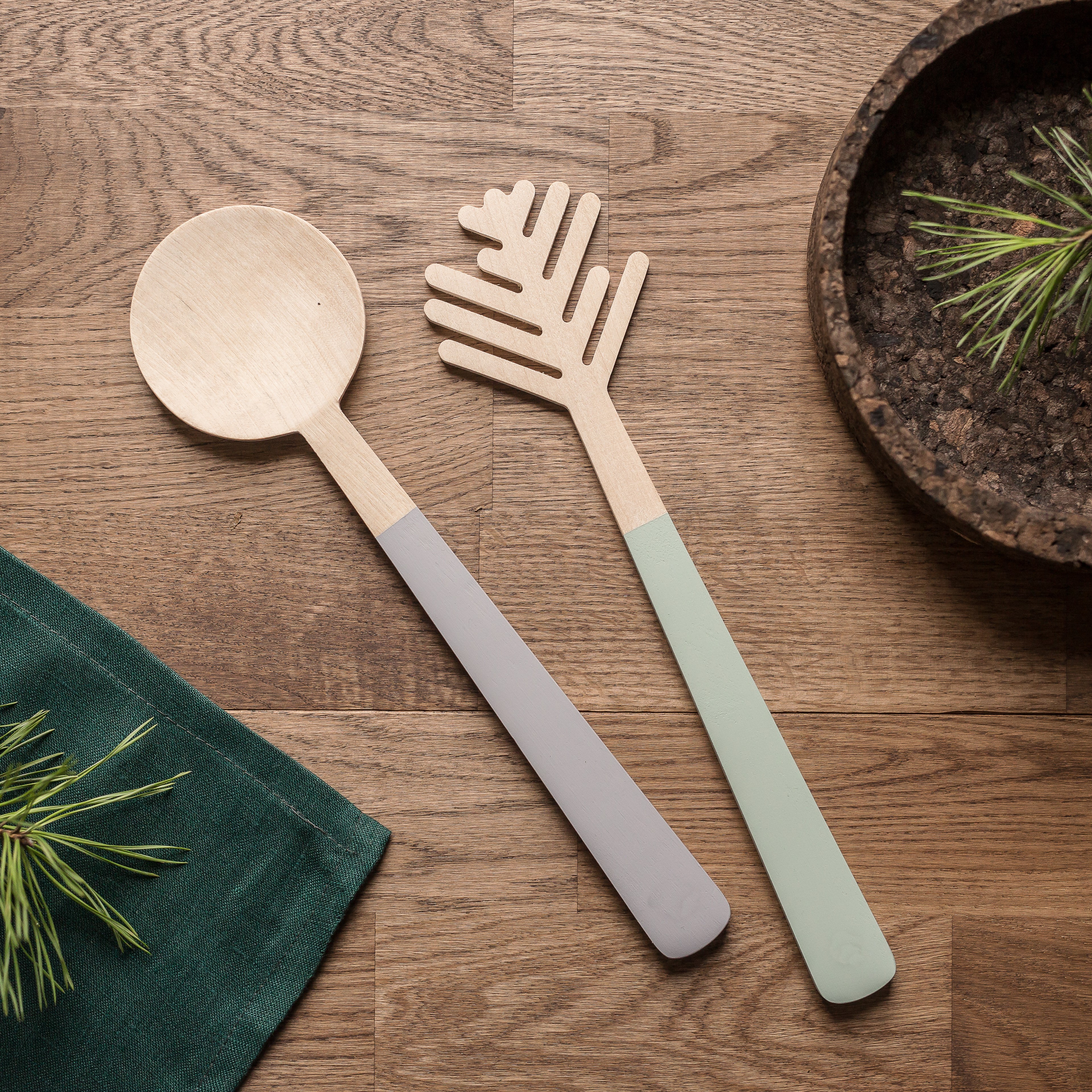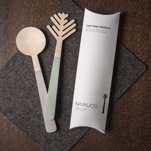 UNIQUE DESIGN. One of the spoons is in the shape of a stylized pine needle. Simple design inspired by nature and naturals materials, pastel colors of these wood utensils gives them a warm feeling. Created by Lithuanian product designer Barbora Adamonytė-Kiedūnė.