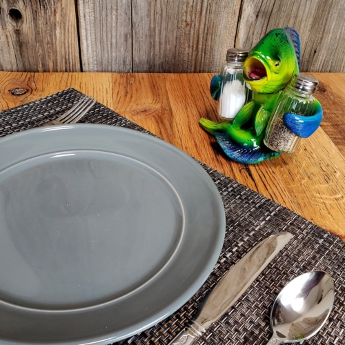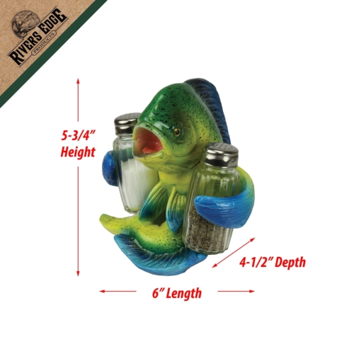 This mahi mahi salt and pepper shaker set from Rivers Edge Products will be a welcome addition to your dining room table. The glass salt and pepper shakers fit nicely into the fins of a cartoonish, openmouthed mahi mahi. The mahi mahi is hand-painted poly resin and is highly detailed and colorful. The shakers are made of clear glass so you’ll never mistake salt for pepper when you season your food. The Mahi Mahi salt and pepper shakers will allow you to season your meal with style.