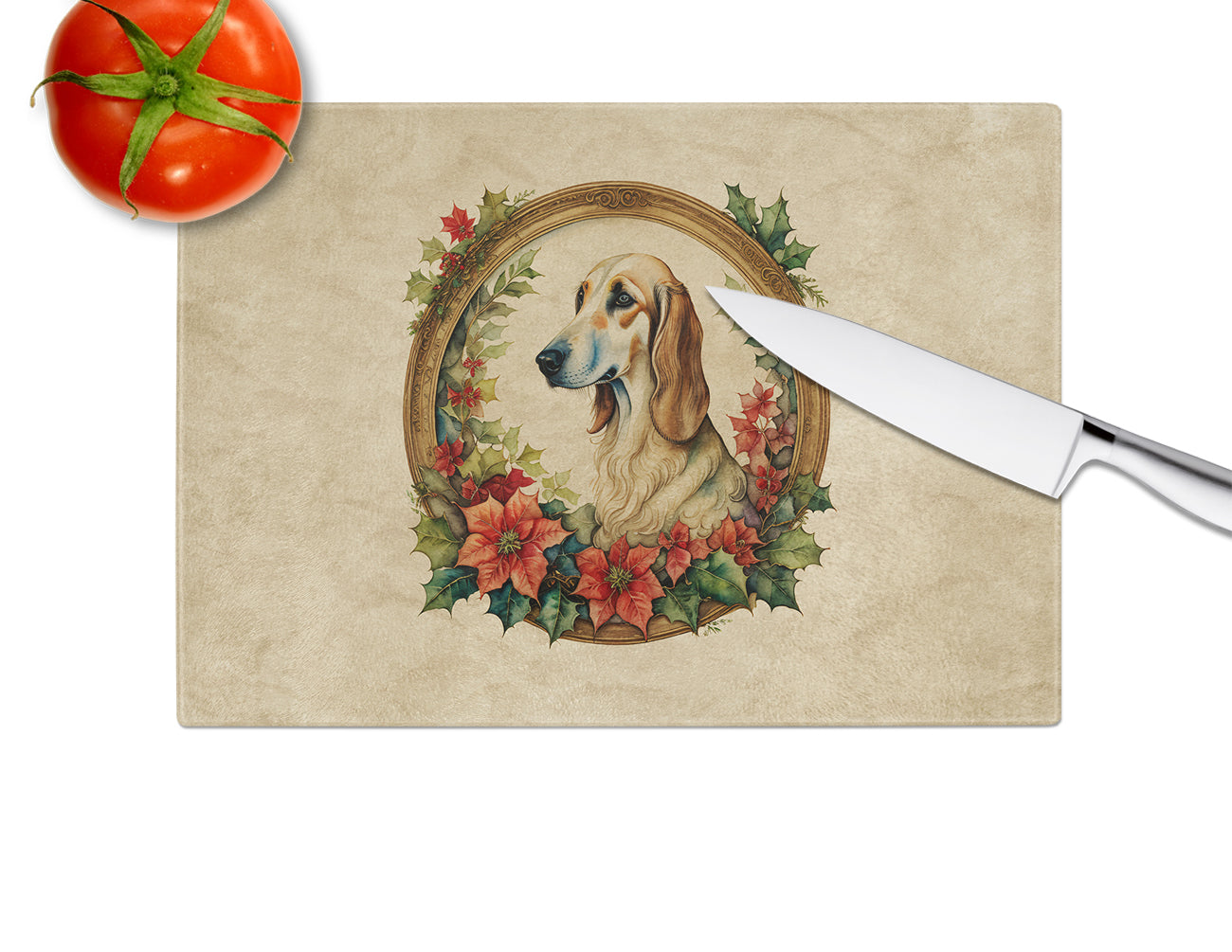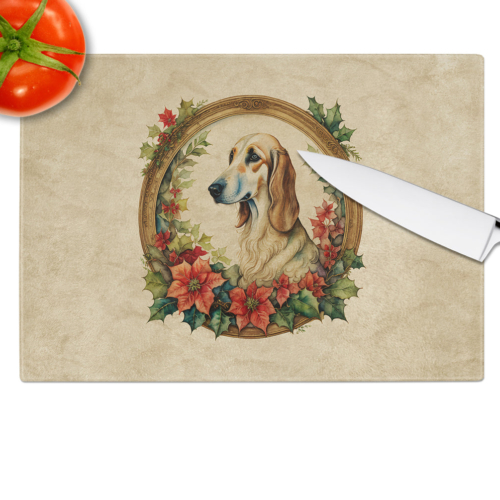 Glass Cutting Board featuring breed specific Saluki artwork. Celebrate Christmas with this Christmas Cutting Board. Introduce your kitchen to the vibrant, large Decorative Glass Cutting Board from Caroline’s Treasures. Crafted from resilient tempered glass, this board is not only a utilitarian necessity but also a colorful art piece. With its generous dimensions of 15 inches in height and 12 inches in length, it offers ample space for all your cutting needs. Every piece showcases captivating artwork from distinguished artists, bringing an aesthetic edge to your kitchen. Beyond its attractive design, this cutting board ensures your countertop stays pristine and unscathed, owing to its heat-resistant properties. Engineered with user convenience in mind, it features non-skid feet for stability, and rounded corners for additional safety. Its robust construction renders it virtually unbreakable, guaranteeing longevity. The board comes with protective feet bumpers, maintaining its position during use. This product is recommended to be hand washed only. Proudly printed and assembled in the United States, this cutting board exemplifies superior craftsmanship. With Caroline’s Treasures’ Decorative Glass Cutting Board, you’re investing in a blend of functionality and artistic flair.