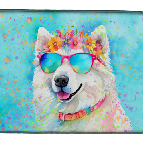 Dish Drying Mat featuring breed specific Samoyed artwork. Say goodbye to messy countertops and soggy dish towels with our innovative dish drying mat. Our high-quality dish drying pad is designed to keep your countertops dry while offering a stylish and efficient solution. Whether you’re air drying dishes, glasses, stemware, silverware, pots, pans, bottles, or even fruits and vegetables, our dish mat is the perfect choice. The 14 inches x 22 inches size fits most counters and dish drying racks, and the non-slip design ensures stability. Made with water-absorbent polyester and a polyurethane foam insert, our dish drying mat is not only functional but also durable. It’s machine washable and printed in the USA for long-lasting use. The beautiful artwork adds flair to your kitchen decor, making it a perfect housewarming gift or present for any occasion. Upgrade your kitchen experience with our absorbent and versatile dish drying mat.