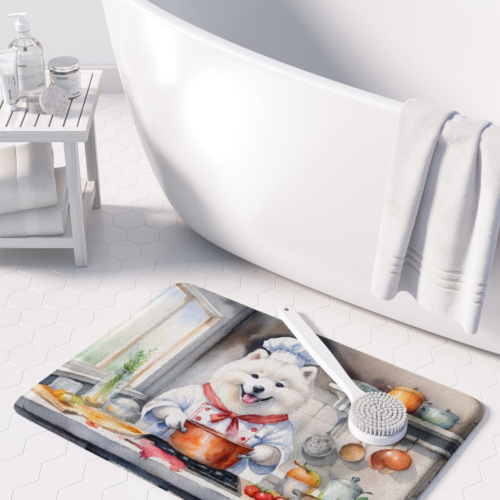 Memory Foam Kitchen Mat featuring breed specific Samoyed artwork. Transform your floor into a work of art with Caroline’s Treasures’ Memory Foam Mat. This mat offers not only a stunning visual appeal but also a luxurious, plush feel that’s incredibly comfortable to the touch. It’s a versatile, machine-washable mat designed for both bath and kitchen use, ensuring you experience the best in comfort and convenience. Care Instructions: Maintaining this memory foam mat is a breeze. Simply follow the care instructions on the product tag. It’s recommended to wash in cold water and dry on a low-temperature setting in the dryer. This ensures the mat retains its quality and longevity, allowing you to enjoy its beauty and comfort for a long time. Caroline’s Treasures’ Memory Foam Mat Machine Washable is the perfect blend of artistry, comfort, and practicality, making it a standout addition to any space. Upgrade your home decor with this versatile and stylish mat today.