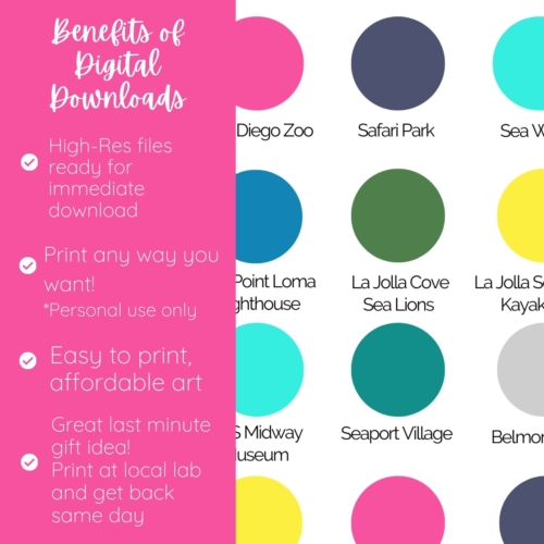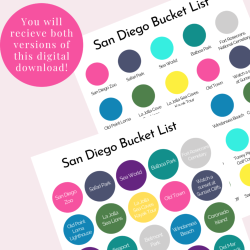 Embarking on a journey to the sun-kissed city of San Diego? Look no further than this San Diego bucket list printable as your ultimate travel companion! Includes the top 25 must-see destinations in San Diego, California!This travel bucket list digital download features 2 files, available for instant download after purchase. Then print and use on your vacation!! ☀️ Start planning your San Diego adventure and check off as many experiences as possible from this bucket list!*THIS IS A DIGITAL DOWNLOAD IMAGE. NO PHYSICAL ITEM WILL BE SHIPPED*Benefits of digital prints:• Print at home, at your local print shop, or online and have them shipped right to your door!• Save time and money on shipping• Style and personalize your home or office just the way you want• Great last minute gift idea• Stop waiting for shipping – these files are ready to download immediately!————————————FILES YOU’LL RECIEVE(2) 8×10 inch jpg file————————————• All of the files included in this download are for PERSONAL USE ONLY and may not be shared, forwarded, sold, or otherwise distributed. This file may not be altered in any way except for cropping to fit your needs. Commercial use is prohibited.• Colors may vary between monitors and printers.**NOTE: ALL SALES ON DIGITAL DOWNLOADS ARE FINAL*** HOW TO DOWNLOAD* Digital Download will be automatically emailed to you upon purchase. Please allow a few minutes for the email to arrive. If they aren’t delivered within an hour, please check your spam folder and contact me with any problems or questions.