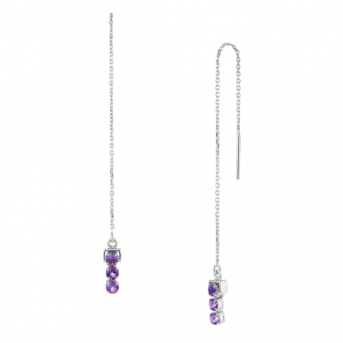 San Shi Amethyst Long Threader Earrings, Sterling Silver