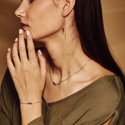 This dainty piece delivers the ultimate minimalistic chic with Sterling Silver and hand-picked natural gemstones. Stack with bracelets in same silhouette or contrast the daintiness with a chunky watch. Or try it with the matching necklaces and earrings.