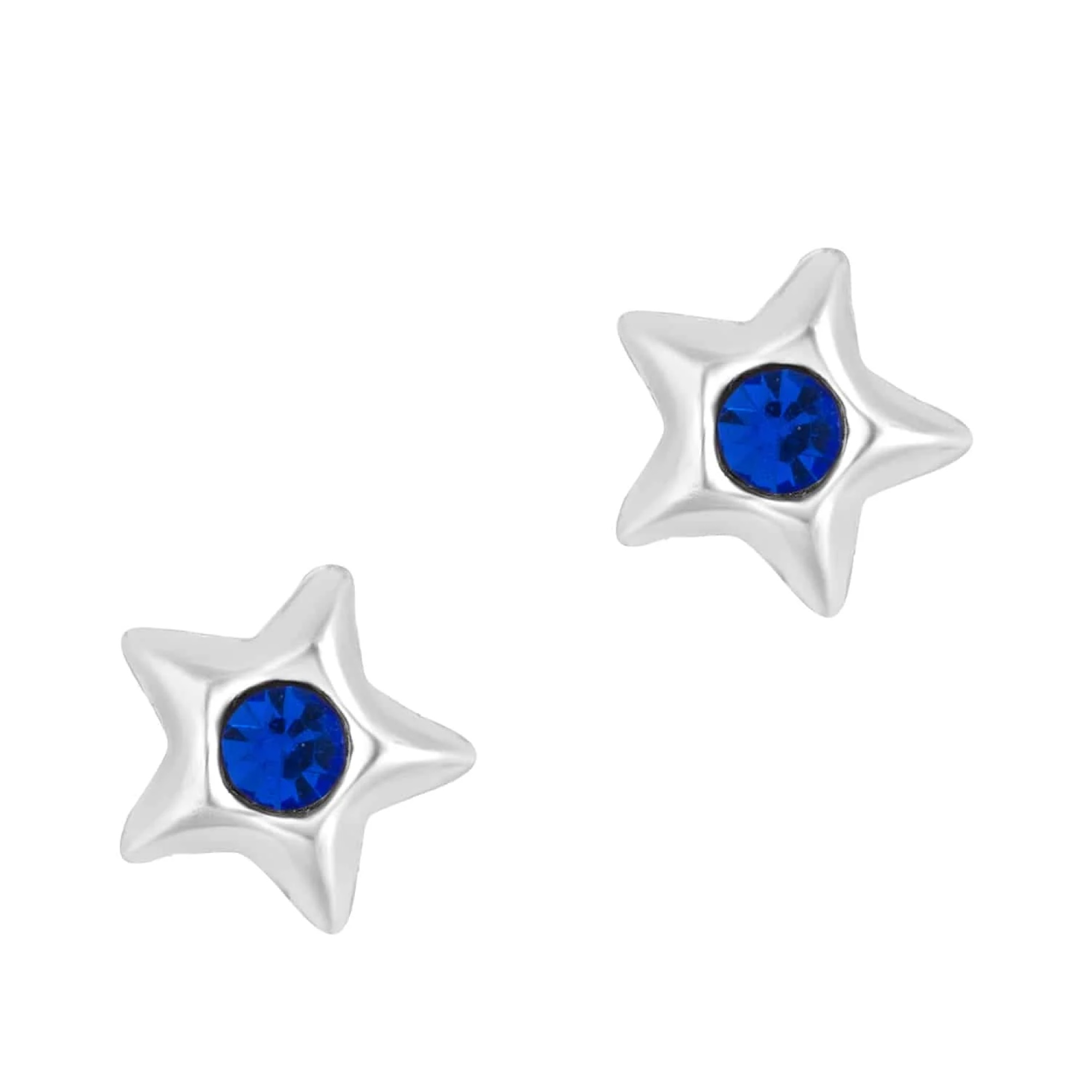 These Crystal Star Studs have Pretty 2mm round Sapphire CZ Crystals set in a 3d Silver Star Surround. They are nice & dainty at 5mm so sit nice and flat to the lobes.  They are finished with a very high polish so look great.  BEST SELLER.