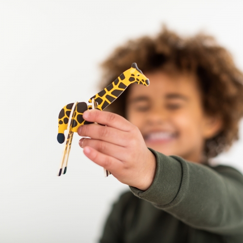 You can even lower or raise the neck of the giraffe so that this magnificent creature can reach the trees!