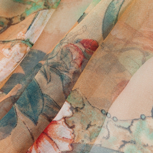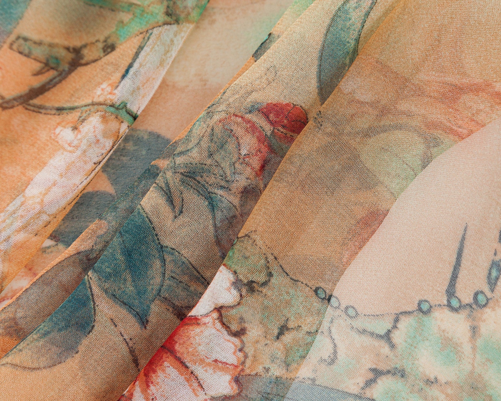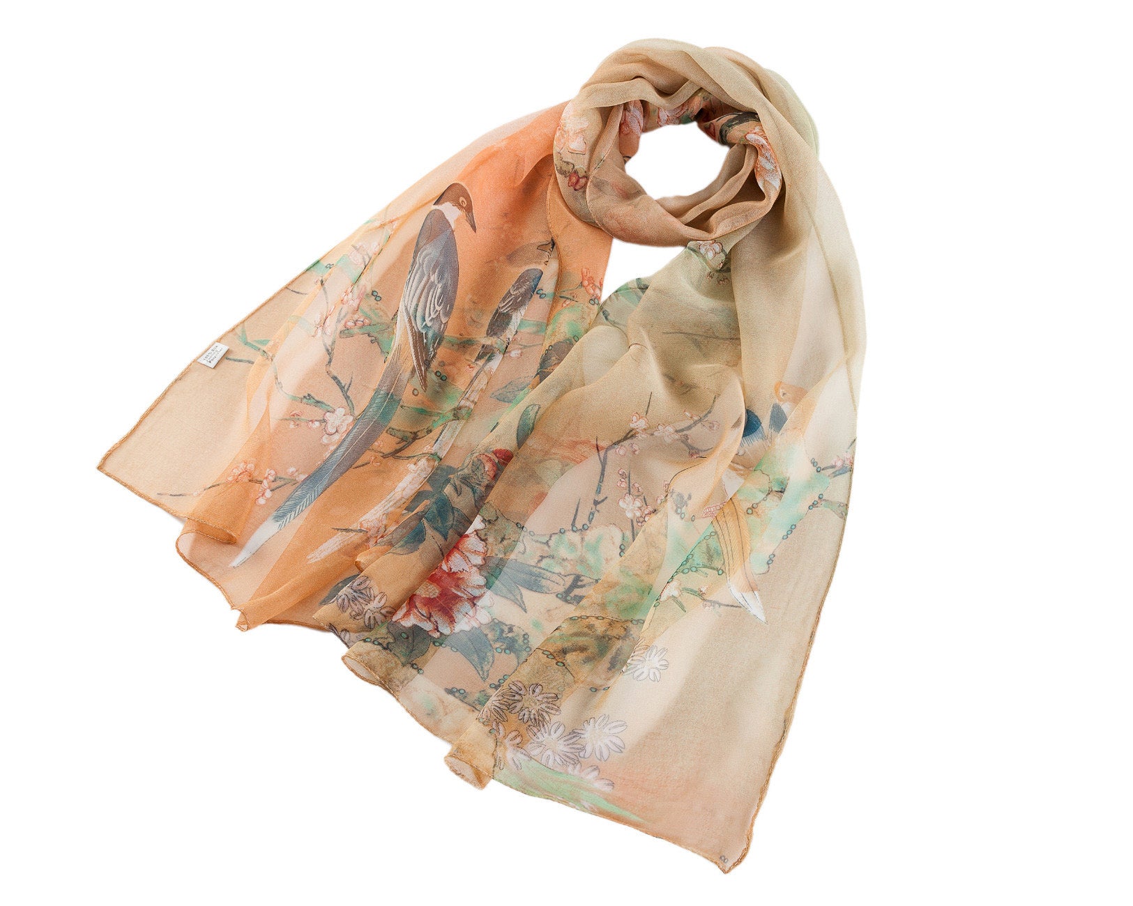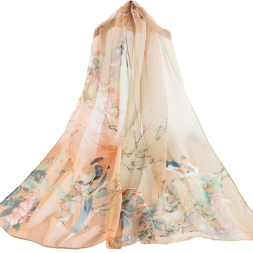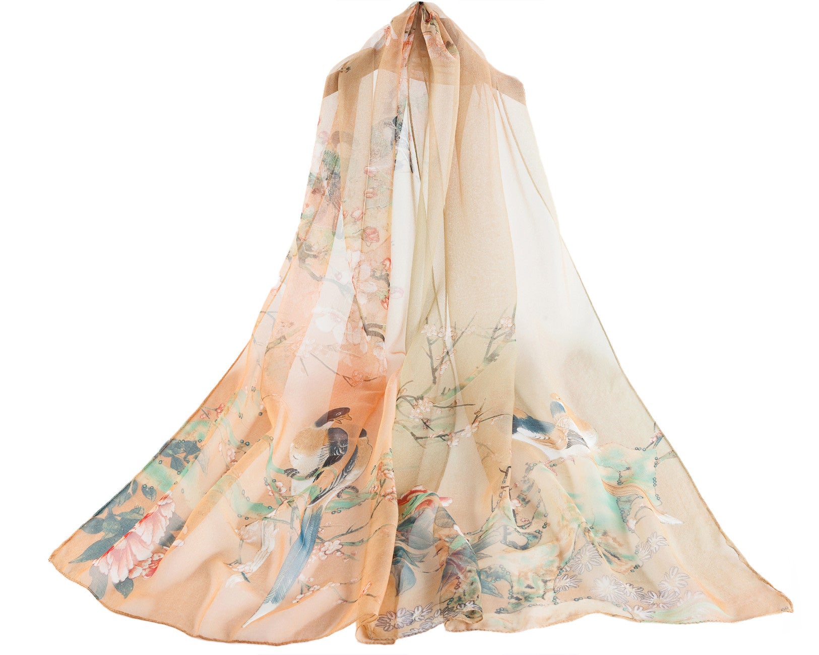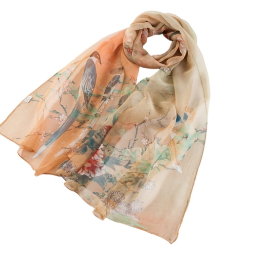 SC-Chiffon Bird Blossom Sand | Chiffon Scarf