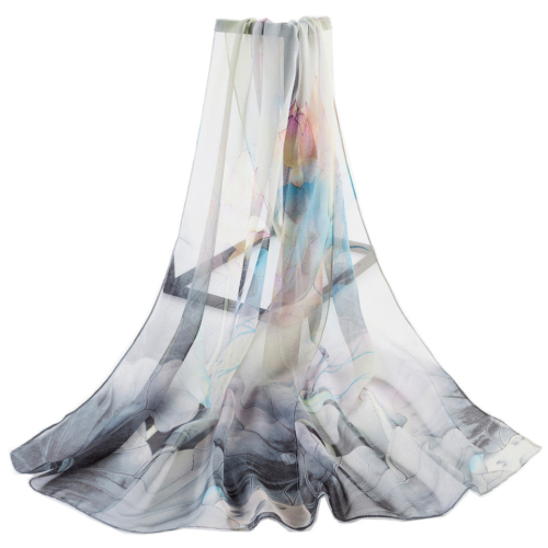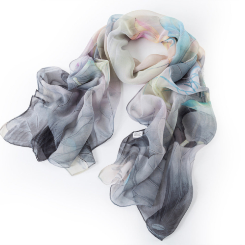 SC-Chiffon Lotus Multi Black | Chiffon Scarf