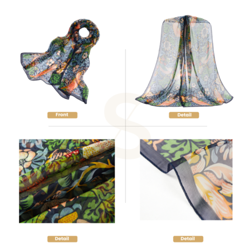 SC-SILK-WM-STBL | 100% Pure Silk William Morris Strawberry Thief Blue Art Scarf